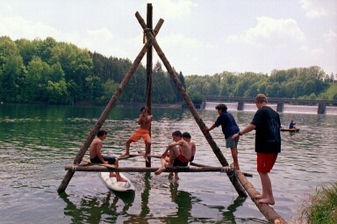 Zwei andere Schüler machen Mathematik am lebenden Objekt und berechnen die Höhe eines auf dem Grundstück stehenden Baumes. «Man hat die Sache einfach vor Augen und begreift spielend, was man tut», meint Thomas, dem die Sache hier viel mehr Spass macht als im Schulzimmer. Planen, ausprobieren, erfahren, korrigieren, das ist der Weg, den die Jugendlichen während des zehntägigen Camps gehen müssen.